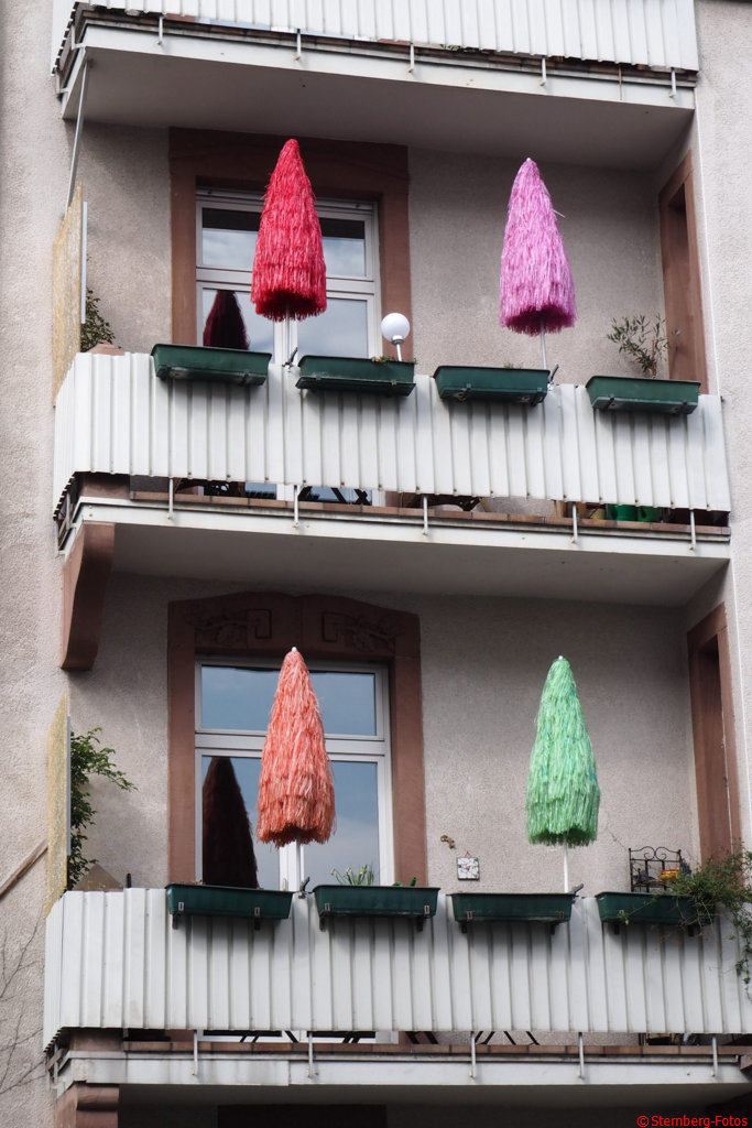 16.4.2019, 15:45 Uhr, Frankfurt: Der Frühling lässt die Balkone der Bornheimer Landwehr erblühen.