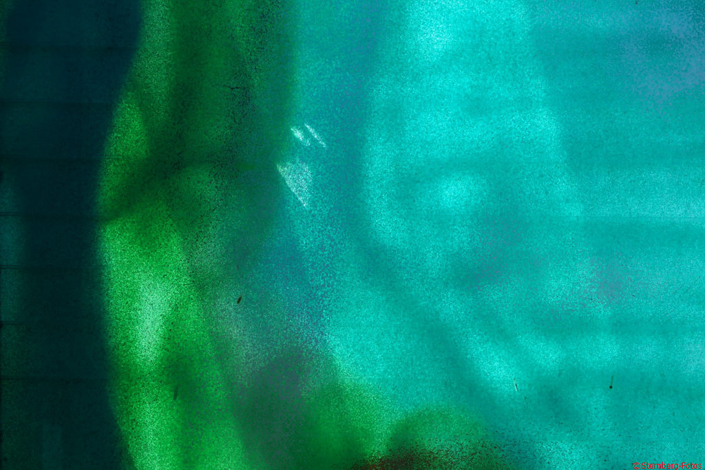 12.5.2019, 13:11 Uhr, Frankfurt: Heute wieder ein Spaziergang. Zum Huthpark. Mit Umweg kommt man auch zu einem Bild von einer gläsernen Lärmschutzwand, die von Sprayern verziert wurde.