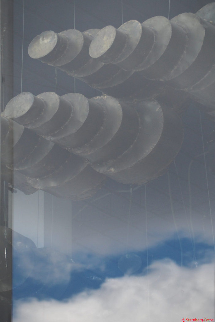 Ich gehe heute geplant vor und überlege vor dem Start meiner Foto-Tour, was es denn werden soll. Es wird die Theater-Anlage am Willi-Brand-Platz, wo ich ein paar Bilder von den Wolken im Theaterfoyer mache.
