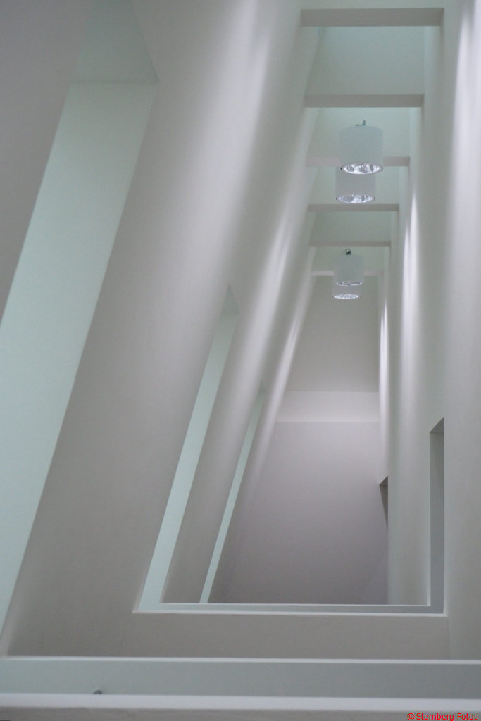 Endlich kommt mal eine nennenswerte Menge Wasser vom Himmel. Ich fahre zum MMK und sehe mir da die Ausstellung "Museum" an, die viele Blicke auf die Architektur freilässt, was ich für hübsche Bilder nutze.