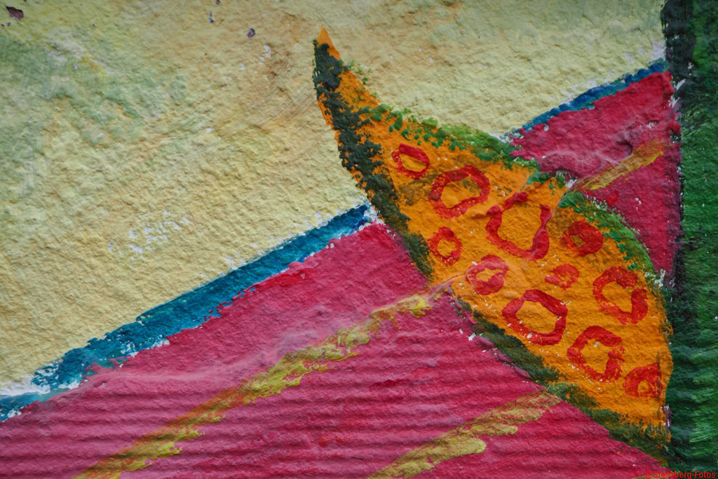 27.11.2019, 14:00 Uhr, Frankfurt: Gut, dass es schöne Wege zu den nächstgelegenen Baumärkten gibt. Auf dem Rückweg von einem Garten-Einkauf fotografiere ich ein Detail von dem bemalten Tor im Günthersburgpark.