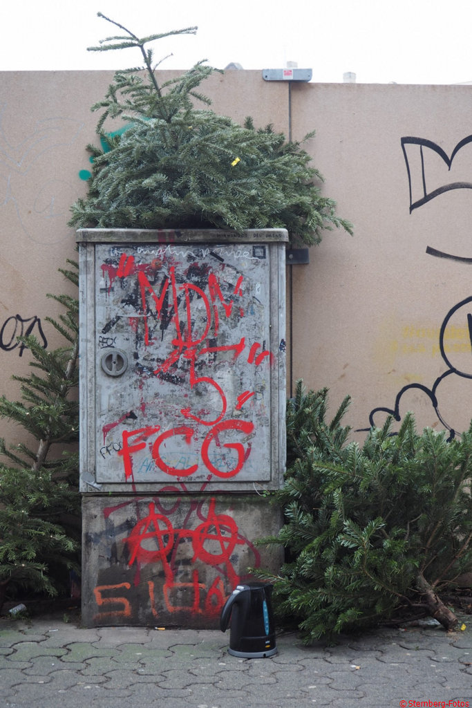 25.1.2020, 14:10 Uhr, Frankfurt: Auch an der Berger Straße liefert heute der Bauzaun zumindest den Hintergrund für mein Bild.