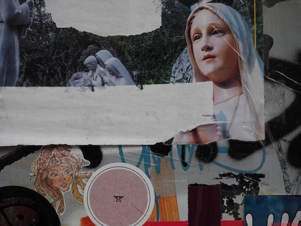 20.2.2020, 14:04 Uhr, Frankfurt: Ich gehe am Main entlang zum Bauernmarkt. In der Fahrgasse lacht mich diese schöne Collage an.