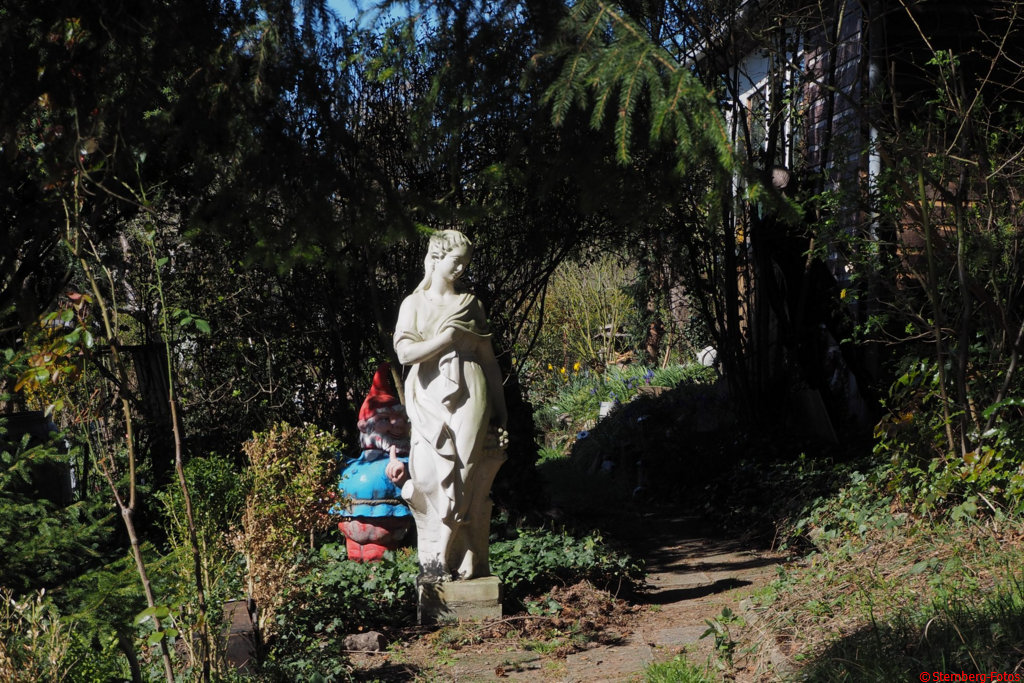 22.3.2020, 11:07 Uhr, Frankfurt: Herrliches Wetter. Ich fahre mit dem Fahrrad zum Huthpark und gehe von da zum Lorberg. Auf dem Rückweg finde ich dieses nette Arrangement in einem Schrebergarten.