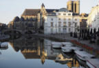 2208640, Gent / Neoclassicistisch herenhuis, 2. Hälfte 19. Jahrh. / Sint-Michielskerk, 1440-1530